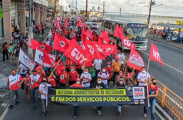 Uma grande caminhada pelas ruas de Aracaju expressou a indignação da população de Sergipe contra o desmonte dos serviços públicos, contra a privatização dos Correios e pelo Fora Bolsonaro, no Dia Nacional de Lutas e Greves Contra a Reforma Administrativa, nesta quarta-feira, dia 18 de agosto.