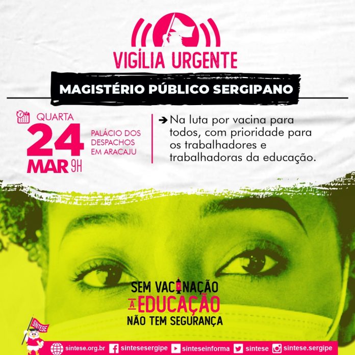 O objetivo é cobrar o governador Belivaldo Chagas que exerça a autonomia estabelecida pela constituição e garanta vacina para todas e todos os sergipanos e inclua os trabalhadores e trabalhadoras da Educação na lista de prioridades junto aos idosos e daqueles que trabalham na linha de frente da Saúde contra a Covid-19.