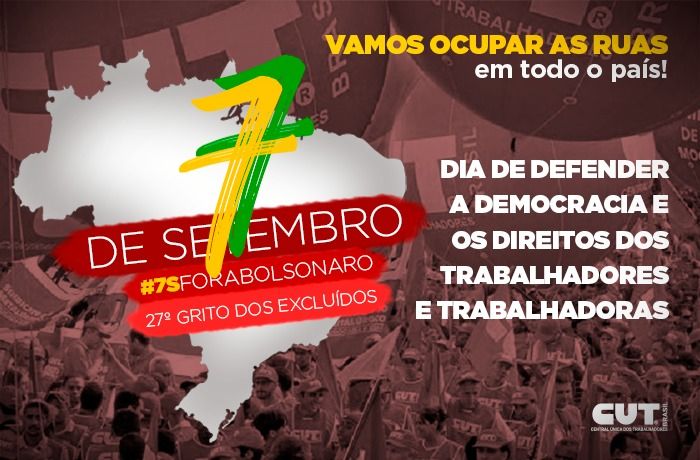 Para o dia 7 de setembro, a convocatória das frentes Brasil Popular e Povo Sem Medo e da Campanha Nacional Fora Bolsonaro reforça que a democracia e a soberania do Brasil estão sob ataque. E que Bolsonaro e sua base ameaçam o país com um golpe, citando ameaças diárias do presidente contra as instituições como o Supremo Tribunal Federal (STF) e o Tribunal Superior Eleitoral (TSE), atacando o as urnas eletrônicas.