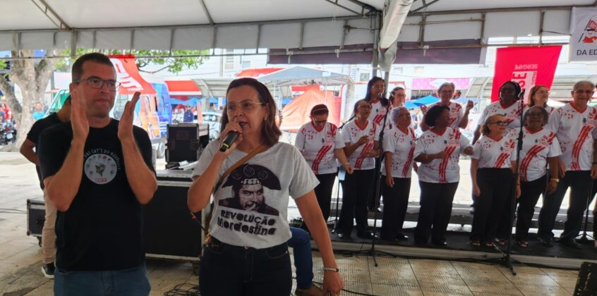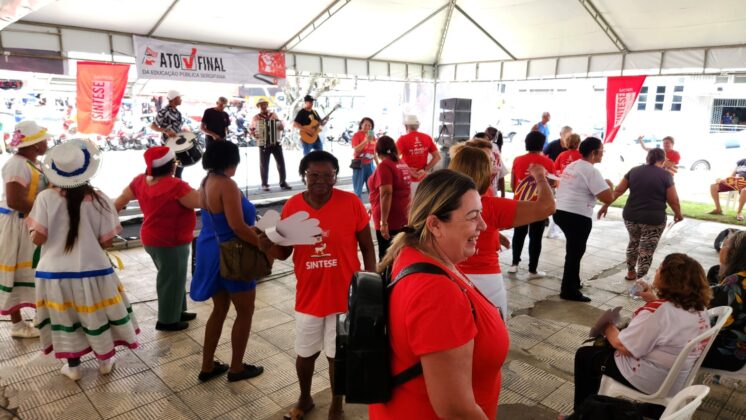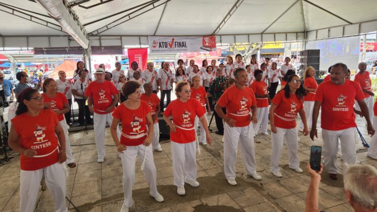 Além das pautas de luta, cada uma das sete regionais trouxe apresentações culturais. Teve taieira, capoeira, banda de pífano, aboiador, trio pé de serra, grupos de dança, o Coral do Sintese Professora Sonia Maria, entre outras atividades que agitaram a manhã. “Isso comprova a amplitude de pensamento do SINTESE. Sabemos que a luta se faz com mobilização, força e também com arte e cultura. Valorizar nossos saberes e nossa cultura e é valorizar nosso povo e nos fortalecer”, disse Ivônia Ferreira, vice-presidenta do SINTESE.