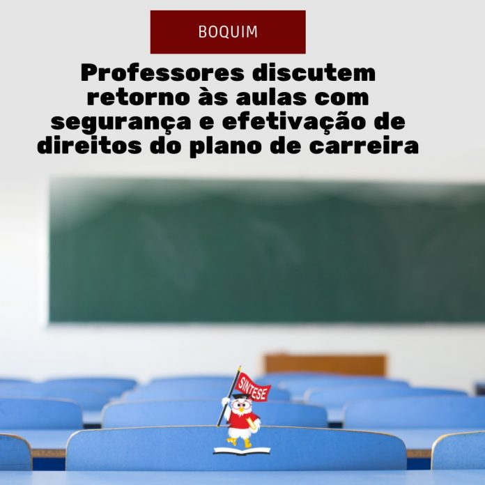 Sobre o retorno às aulas presenciais, os docentes discutiram a Resolução nº 96 do Conselho Municipal de Educação de Boquim que garante a volta às aulas presenciais de forma gradual, por grupos de estudantes, etapas ou níveis educacionais, em conformidade com protocolos produzidos pelas autoridades sanitárias locais, pelo sistema de ensino, secretaria de educação, com participação das comunidades escolares, também foi discutido a criação de um comitê de biossegurança para garantir a implementação do que está previsto no documento.