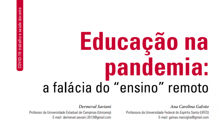 Confira artigo de Dermeval Saviani e Ana Carolina Galvão que trata dos prejuízos do ensino remoto quando aplicado de forma inconsequente.