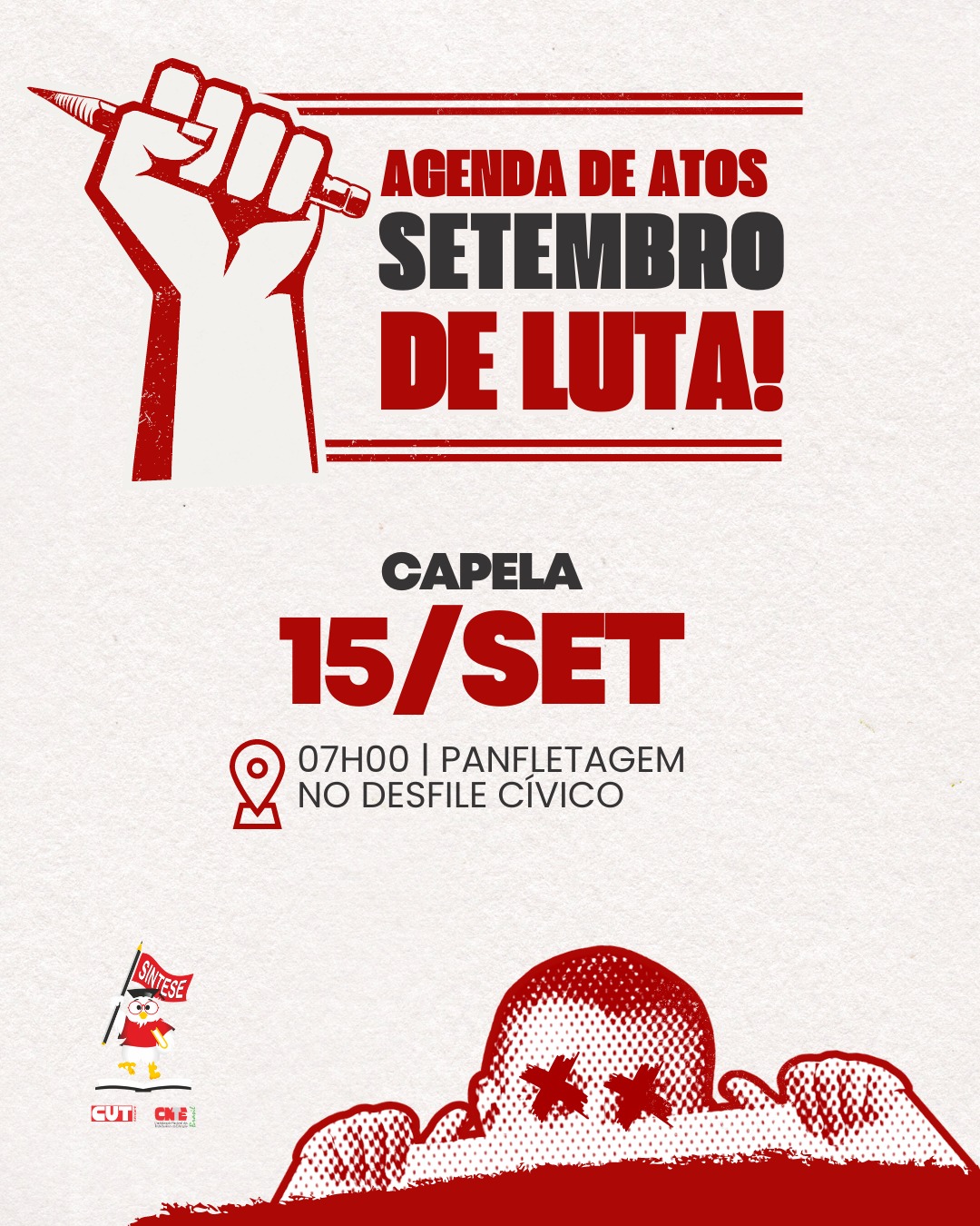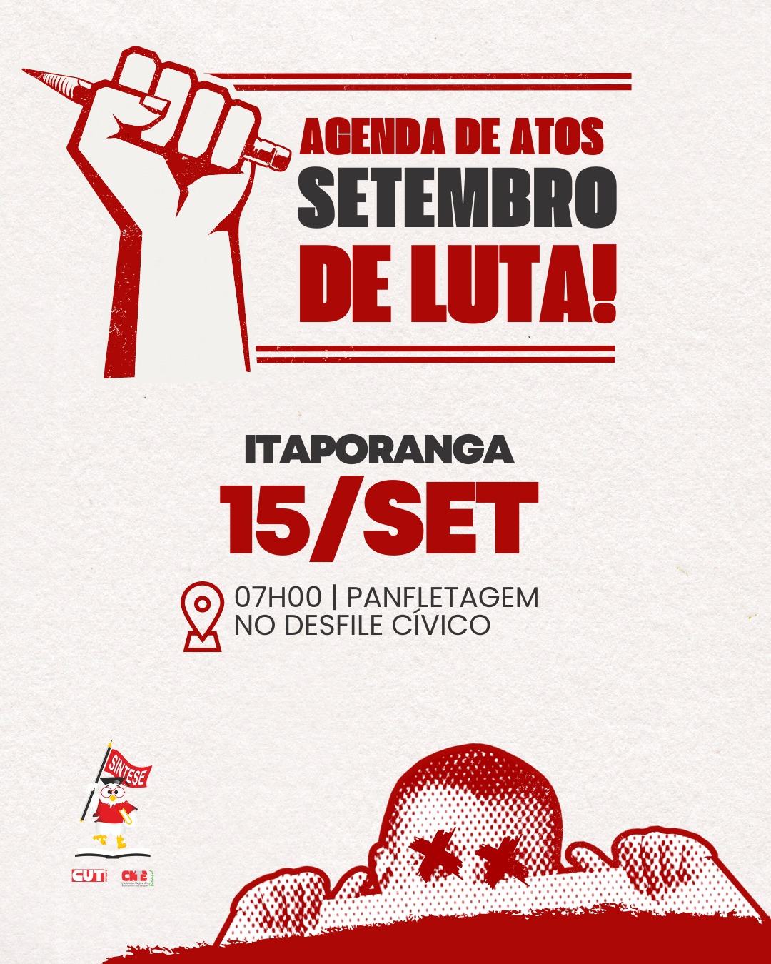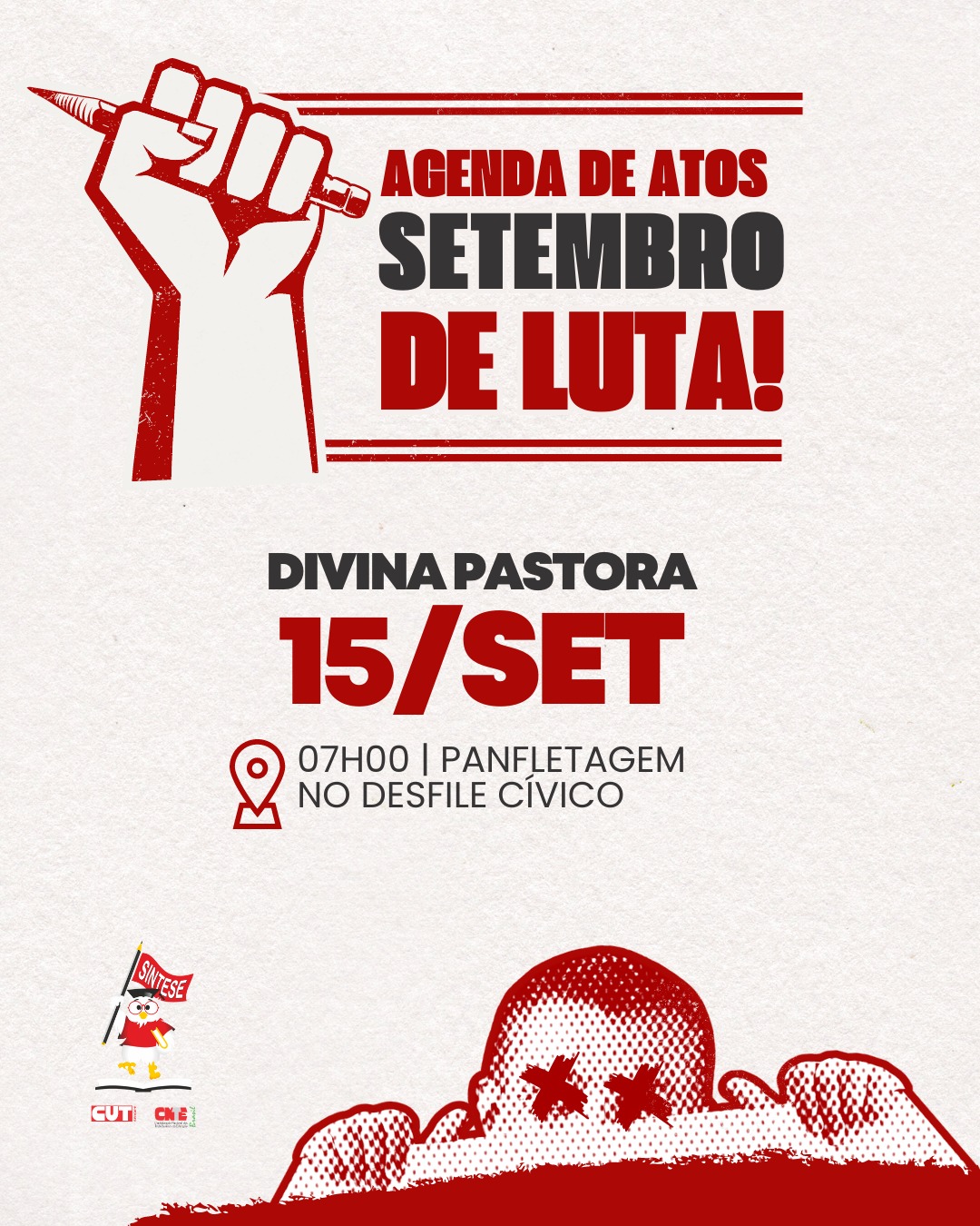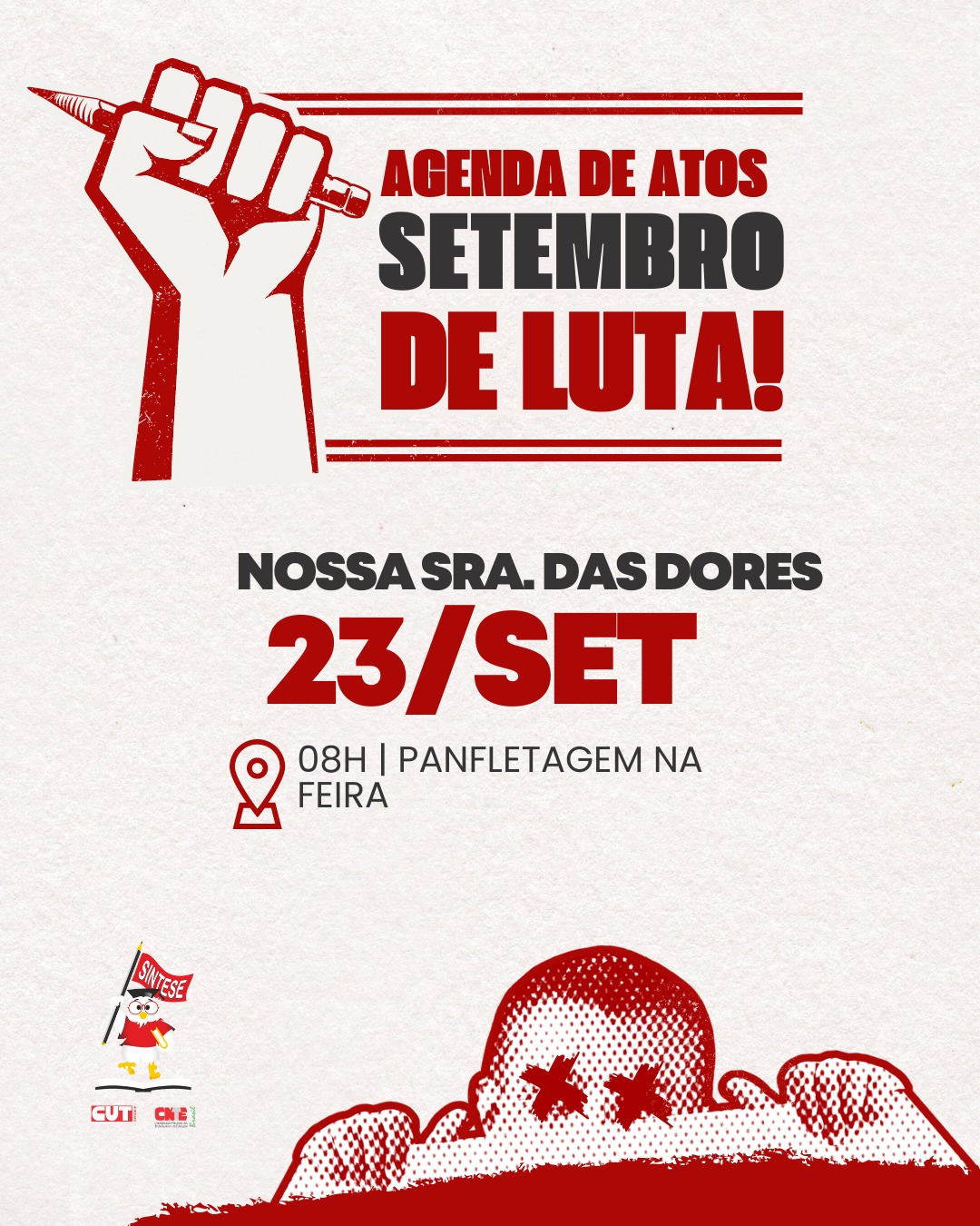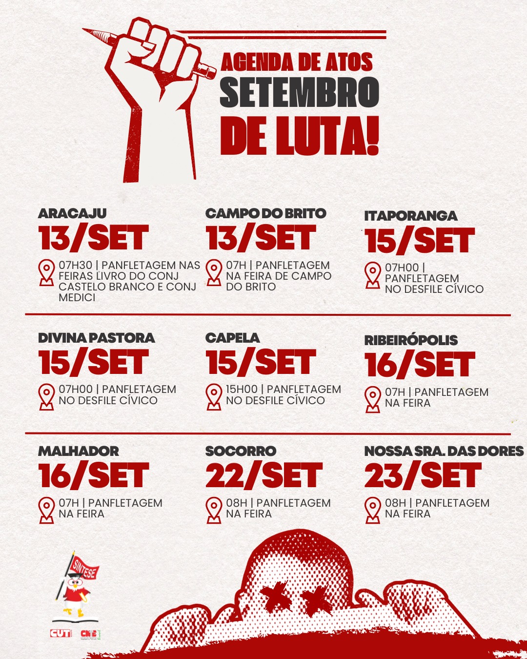 Também na sexta, dia 13, faremos panfletagem na feira de Campo do Brito, a partir das 7h. Veja abaixo a agenda completa das nossas ações de luta