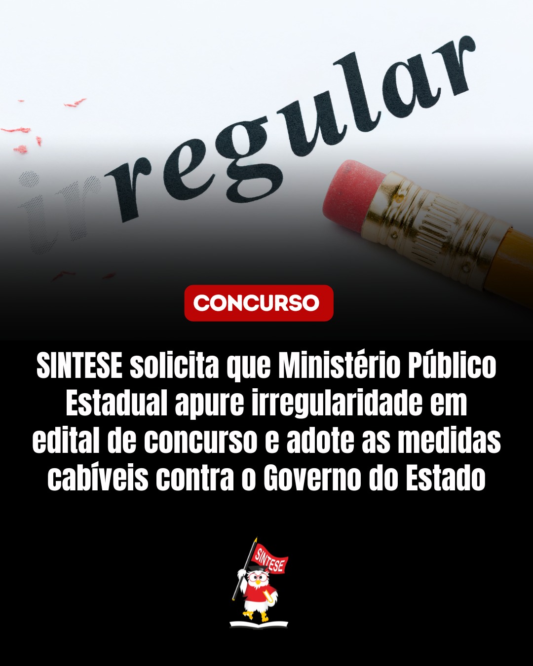 SINTESE solicita que Ministério Público Estadual apure irregularidade em edital de concurso e adote as medidas cabíveis contra o Governo do Estado
