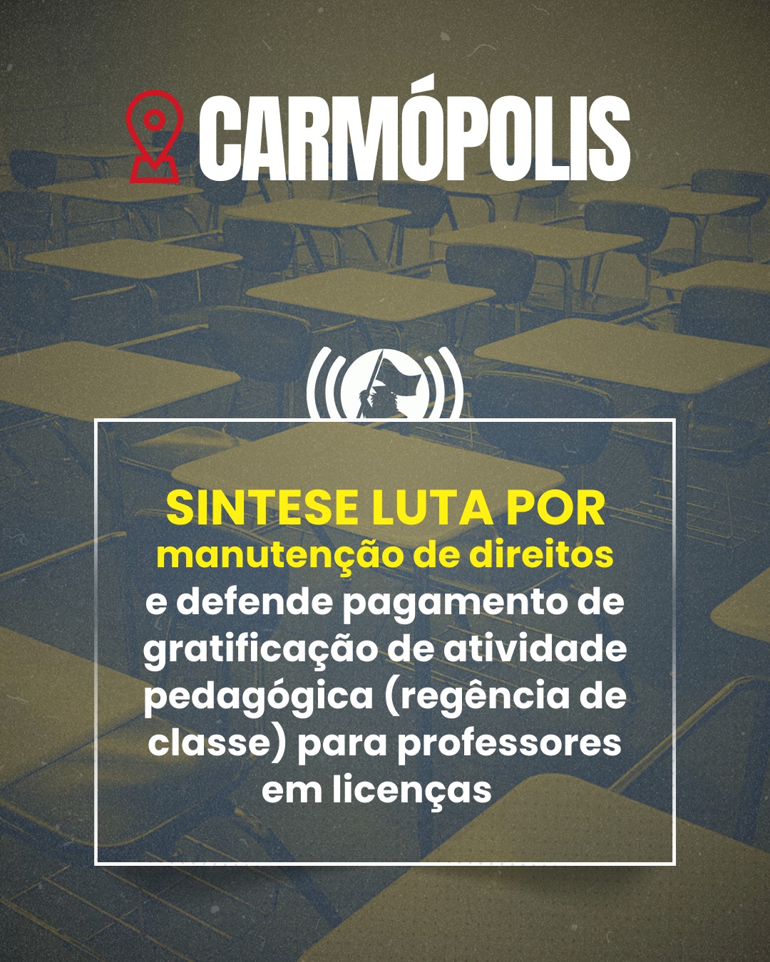O SINTESE vem reafirmar, junto as professoras e professores de Carmópolis, a sua plena luta e defesa pelos direitos do magistério público de Sergipe. Em momento nenhum, dirigentes e representantes deste Sindicato se colocaram, em qualquer espaço que fosse, contra aquilo que nos é assegurado por Lei.