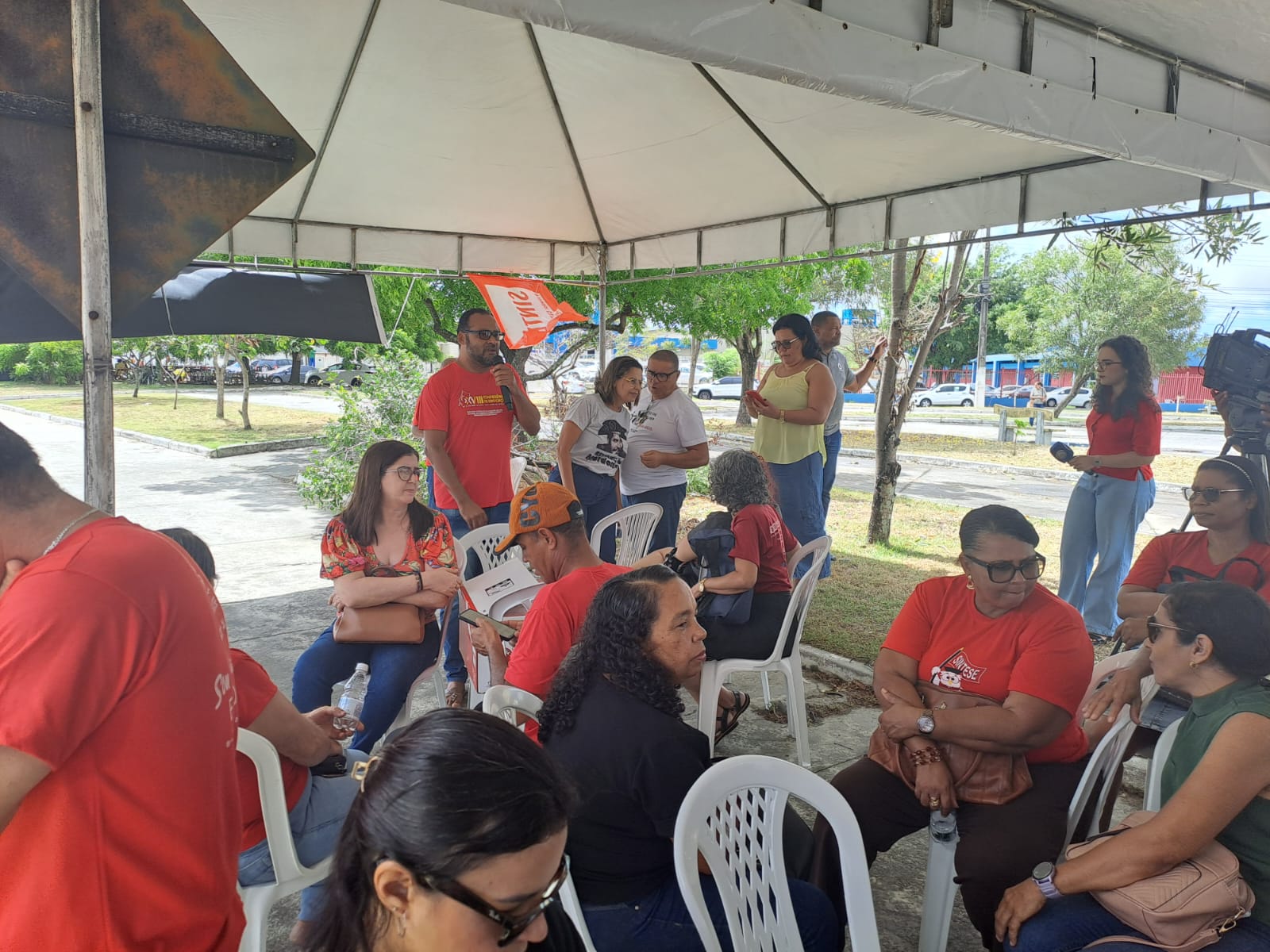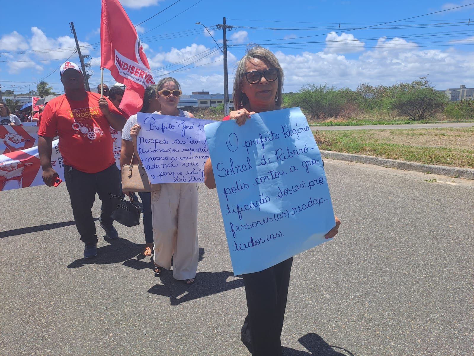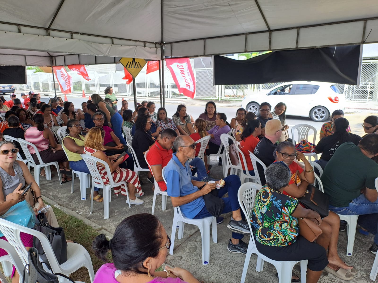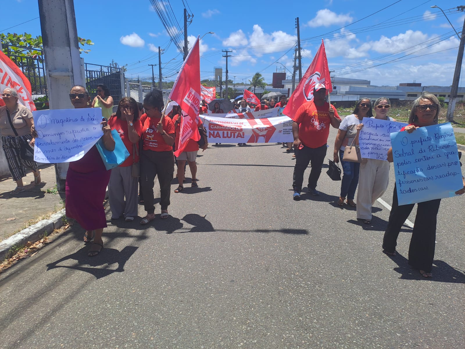 Diante de tal ameaça e do atraso dos salários de novembro, professoras e professores de 12 município sergipanos paralisaram suas atividades nesta quinta-feira e fizeram ato em frente ao TCE, com passeata até o MPE. Este foi um ato unificado entre SINTESE, CUT e Federação do Servidores Públicos Municipais do Estado de Sergipe (FETAM), já que o atraso e o não pagamento de salários não afeta apenas professoras e professores, afeta também todos outros servidores públicos municipais.