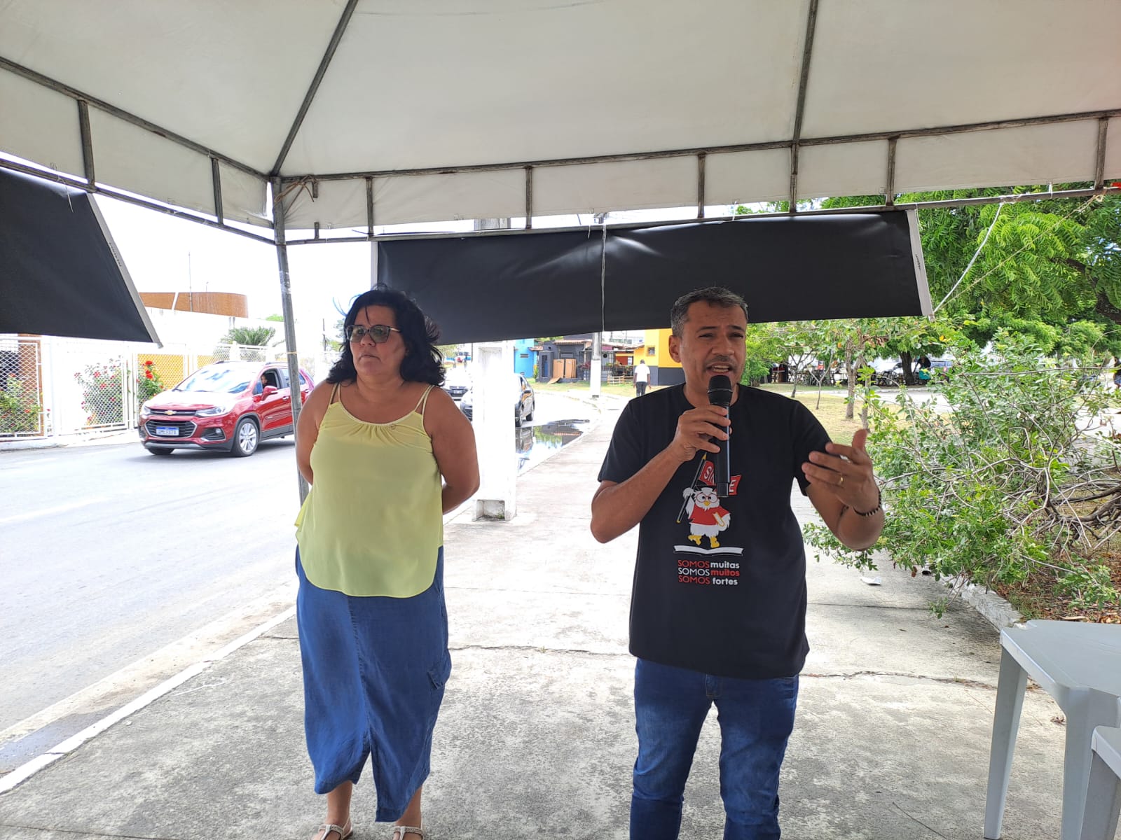 Com esta frase, a vice-presidenta do SINTESE, professora Ivônia Ferreira, alertou e fez a cobrança ao Tribunal de Contas de Sergipe (TCE) e ao Ministério Público Estadual (MPE), durante ato ocorrido nesta quinta-feira, dia 5, diante da ameaça que vivem professoras, professores e demais servidores públicos com o fim das gestões municipais, em dezembro de 2024.