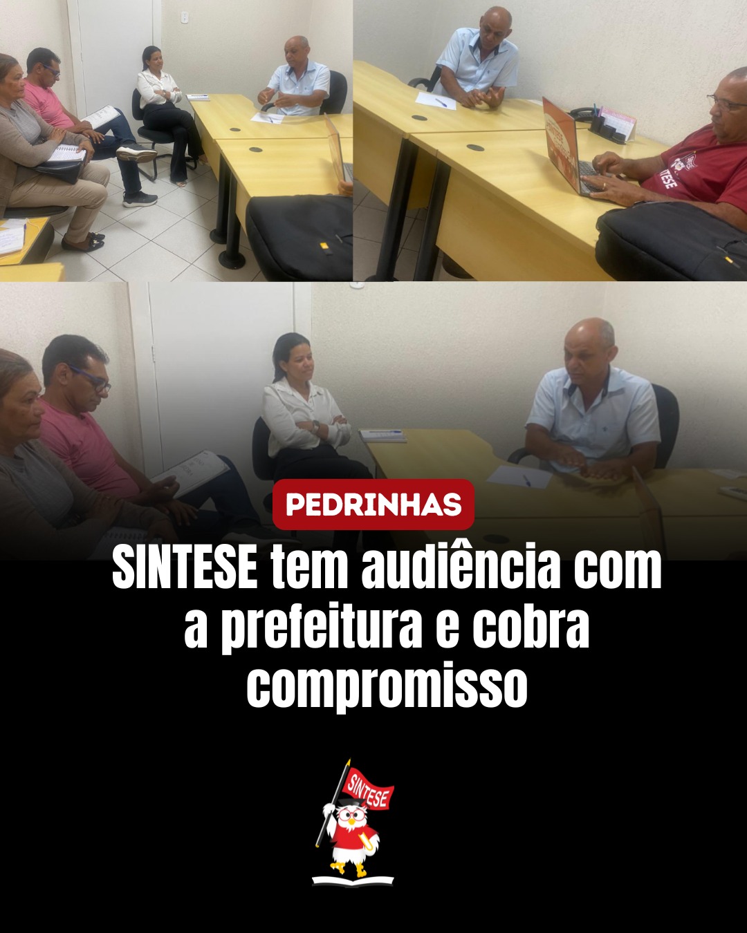 O SINTESE reafirmou a importância do diálogo e segue firme na luta em defesa dos direitos de professoras e professores. Participaram da reunião, representando a Prefeitura de Pedrinhas, Domingos Vicente Souza, assessor da prefeitura, e Maria Gabriela Santana Conceição, do Controle Inter; e representando o SINTESE, Jivaldo Goes e Estefane Lindeberg, diretores do SINTESE Subsede Regional Centro-sul, e Maria José e Ricardo Alexandre, membros da comissão local de negociação.