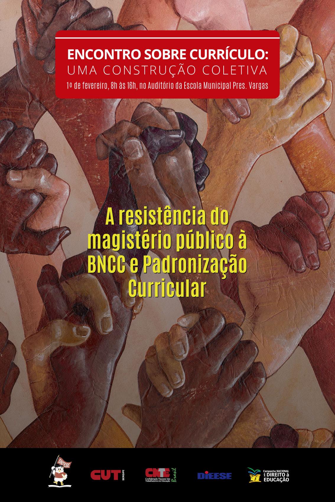 Nesta sexta, dia 01, a partir das 8h no auditório Antônio Vieira (anexo a Escola Municipal Pres. Vargas) o SINTESE realiza encontro sobre currículo. O evento que é resultado das oficinas pedagógicas realizadas nas pré-conferências e na conferência no ano de 2018 tem como base a construção coletiva para a resistência dos professores e professoras a Base Nacional Comum Curricular e a consequente padronização do currículo.