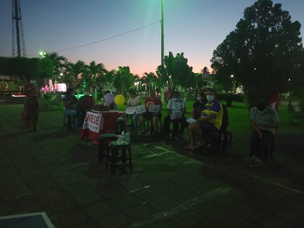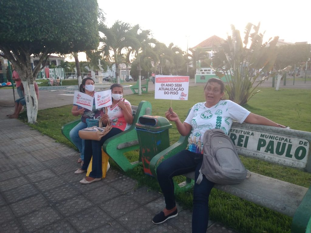 O ato aconteceu na porta da prefeitura da cidade. A gestão municipal que tem a frente o prefeito Anderson de Zé das Canas não cumpriu com a atualização do piso salarial de professores e professoras da rede municipal, do ano de 2020.
