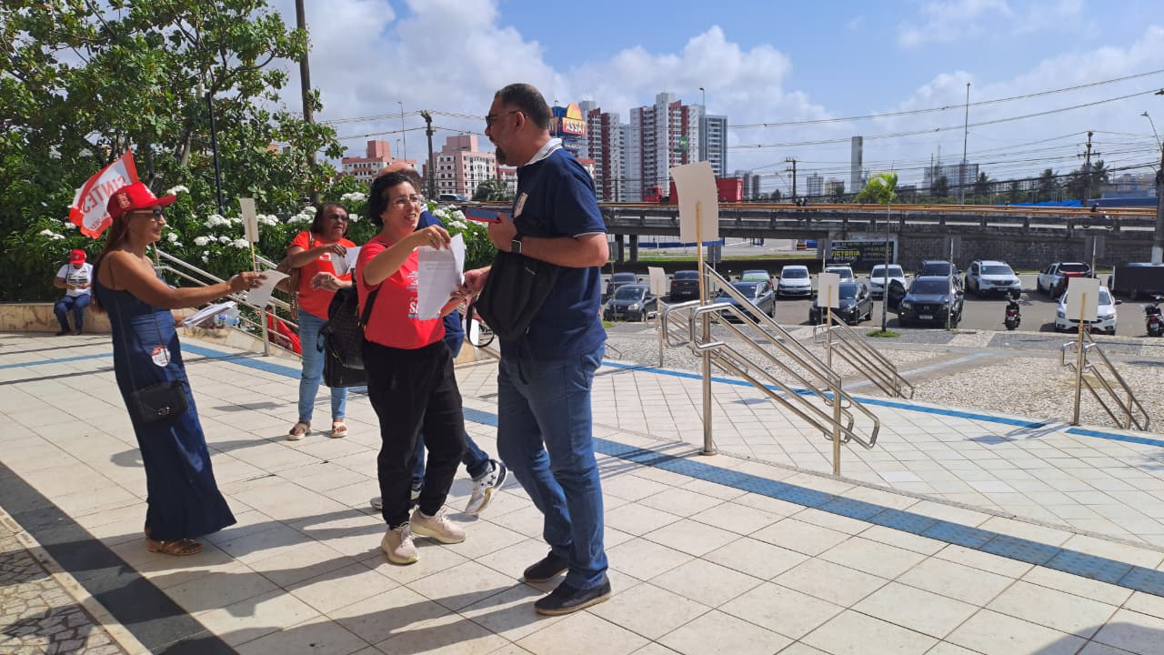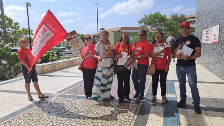 Nesta terça-feira, 14, o SINTESE organizou uma ação de luta na porta do Teatro Tobias Barreto, onde aconteceu a entrega do prêmio “Educação Nota 10”, para dialogar com professoras e professores da Rede Estadual de Ensino e dizer ao Governo do Estado e a Secretaria de Estado da Educação, que valorização não se faz com premiação, mas com respeito a direitos.
