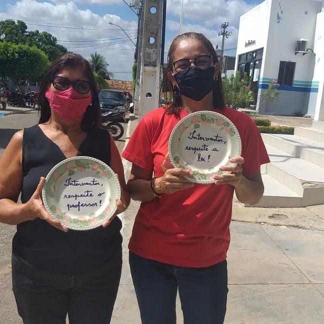 Na manhã desta quarta, 23, antevéspera de Natal professoras e professores com pratos vazios e cartazes fizeram ato em frente à prefeitura para denunciar o descaso adotado pelo interventor Edgar Simeão pela continuidade do atraso e parcelamento dos salários, ou seja, manteve a política de massacre aos docentes das escolas municipais.