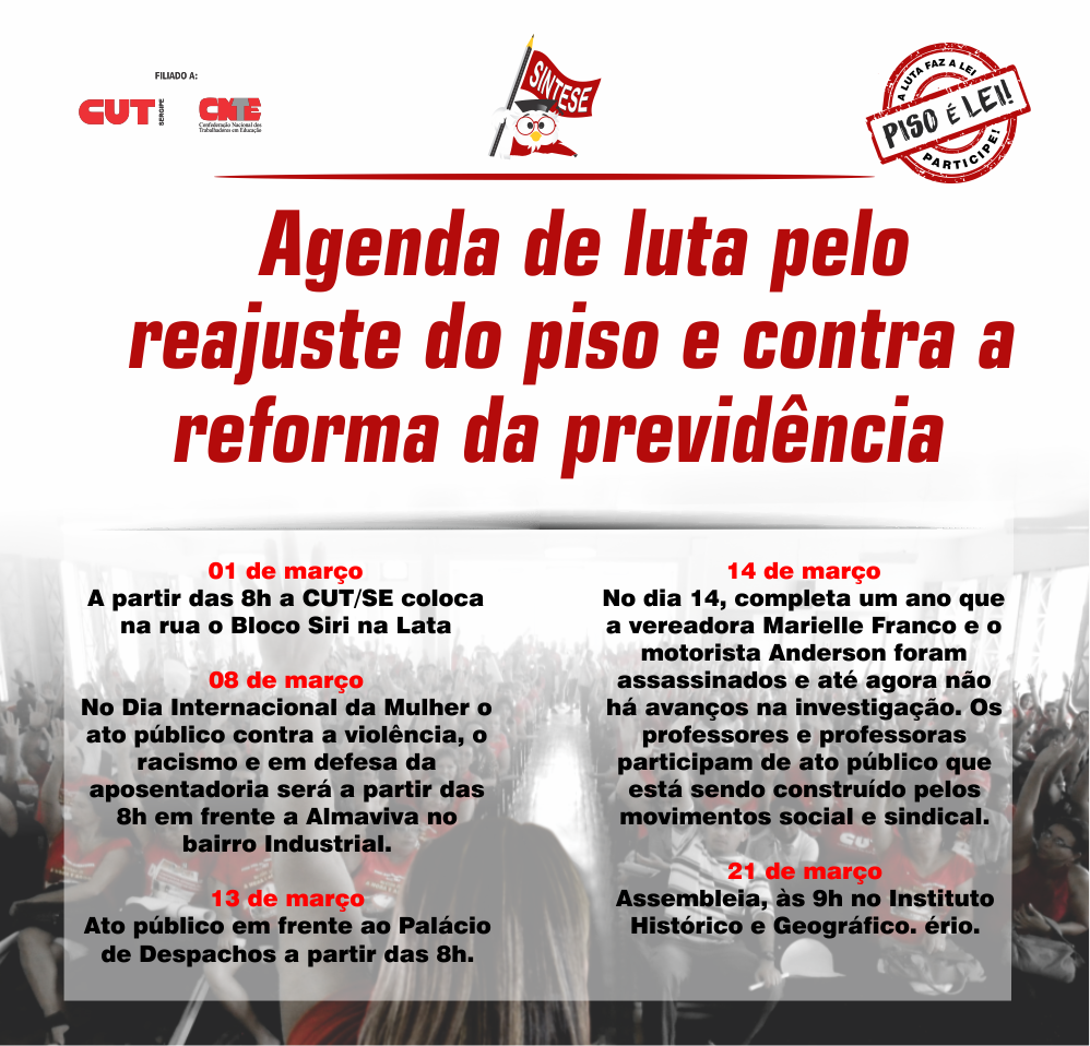 Na assembleia ocorrida na última terça, 26, os professores e professoras da agendadelutas 27 2rede estadual e redes municipais definiram agenda de luta não só pelo reajuste do piso, mas também contra a reforma da previdência.