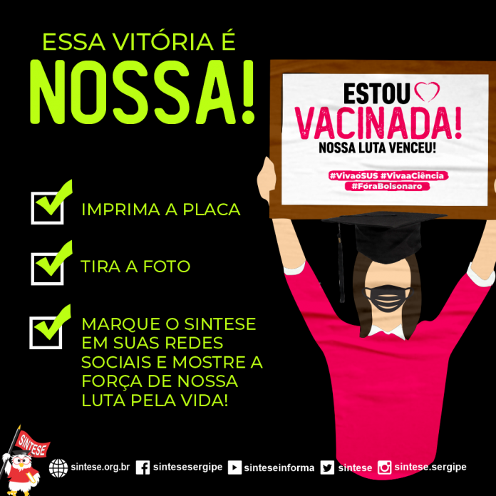O SINTESE disponibiliza abaixo várias versões do cartaz que simboliza a vitória da luta do magistério pelo início da vacinação dos profissionais de educação.