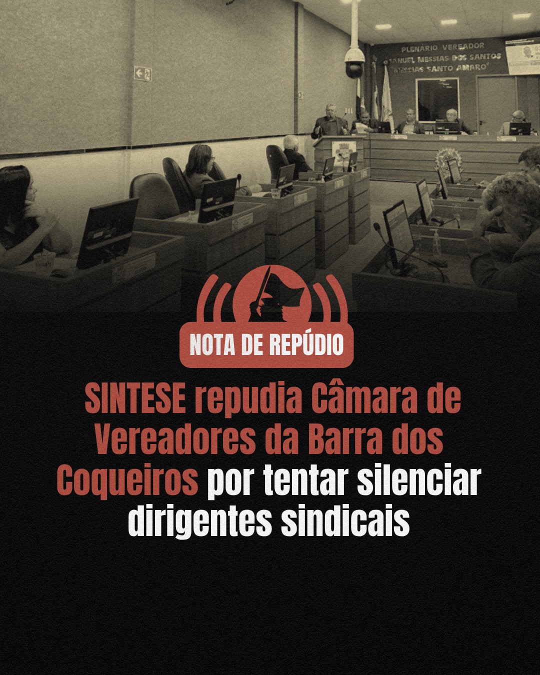 Nota de Repúdio: SINTESE repudia Câmara de Vereadores da Barra dos Coqueiros por tentar silenciar dirigentes sindicais
