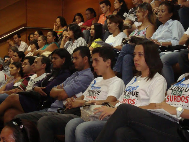 Assim como ocorreu na última audiência sobre o PNE na Assembleia, membros do movimento de surdos pela Escola Bilíngue tiveram uma participação maciça na audiência pública sobre financiamento da educação para a implantação do PNE. Um dos membros do movimento, o jovem Breno manifestou que o fechamento das Escolas Bilingues não é um avanço, mas um retrocesso na política de inclusão. “Isso é dar um passo para trás, até um tempo em que os surdos eram oprimidos e tinham que estudar em escolas de ensino oral. É necessário que haja recursos para atender ao aluno surdo. É importante que exista a Escola Inclusiva no nosso estado, mas a Escola Bilíngue é plena para os surdos”, explicou.