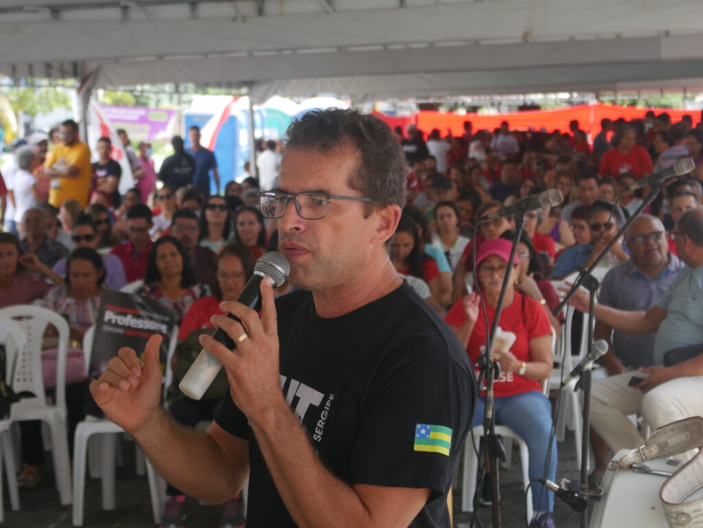 “O governo do Estado constrói a narrativa de que paga o piso, mas ele não respeita a carreira do magistério. Hoje não importa se o professor ou a professora tem mestrado, doutorado e a formação em ensino médio, se tem 5 ou 25 anos de magistério, o vencimento inicial é o mesmo, isso não é carreira. É transformar piso em teto e esse não é o objetivo da lei”, afirma o presidente do SINTESE, Roberto Silva dos Santos.