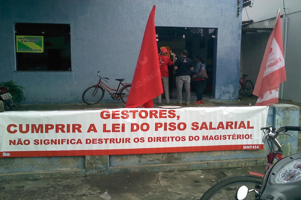 O professor Dernival dos Santos, que estava no local no momento da agressão e fotografou a movimentação, disse que os professores de São Domingos estão em greve desde o dia 16 de maio e entre suas reivindicações estão o pagamento do reajuste do piso salarial de 22,22%, o pagamento do salário mensal, que segundo os professores está sendo fracionado, o repasse correto do INSS e a melhoria de estruturas das escolas.