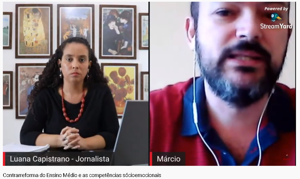 Na live desta quarta, dia 02, a jornalista Luana Capistrano conversa com o professor Márcio Magalhães da Silva, do Departamento de Educação da Universidade Federal de Lavras sobre a contrarreforma do Ensino Médio e as competências sócioemocionais