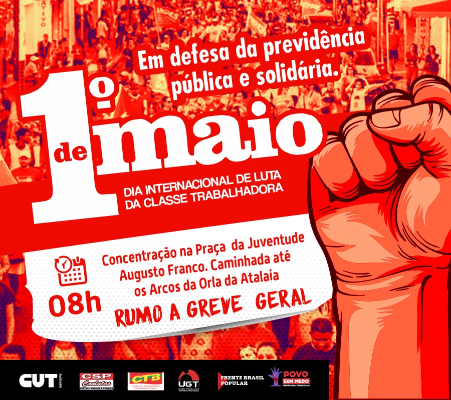 O protesto do Dia 1º de Maio em Sergipe é uma construção das Centrais Sindicais, Sindicatos de Trabalhadores, Movimentos Sociais e Populares, Partidos e Mandatos de Esquerda e das Frentes Brasil Popular e Povo Sem Medo.