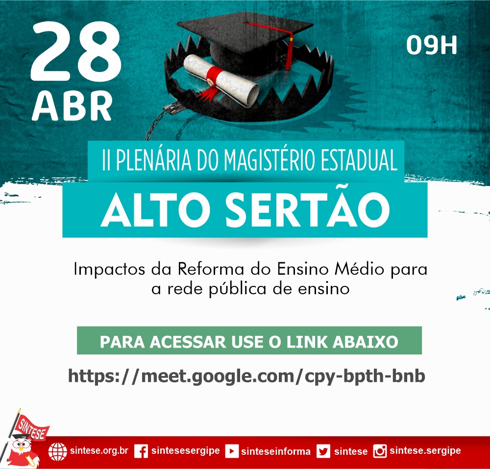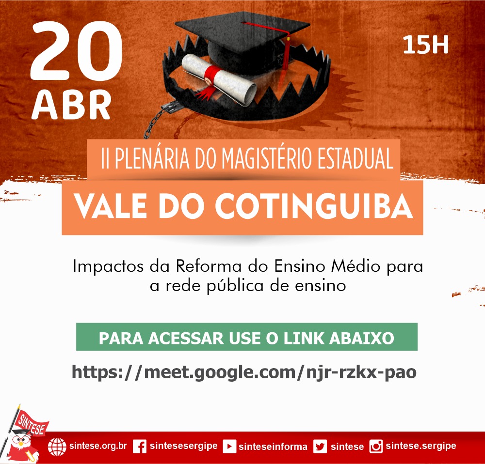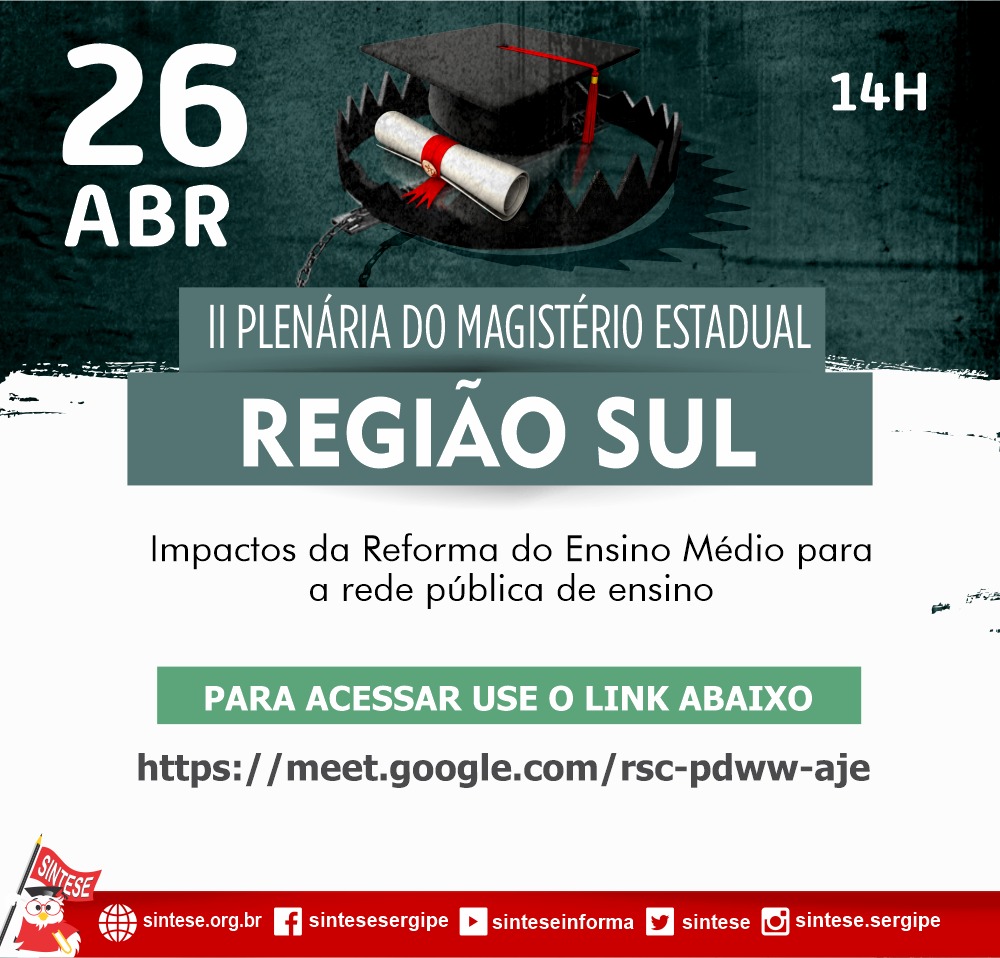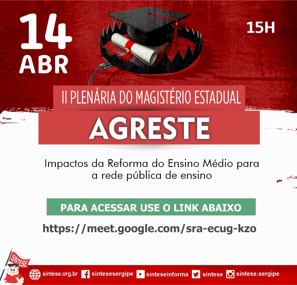 Para que as Professoras e Professores possam se aprofundar nesse debate estaremos realizando durante o mês de abril Plenárias Regionais para debater sobre esse tema tão importante: A REFORMA DO ENSINO MÉDIO.
