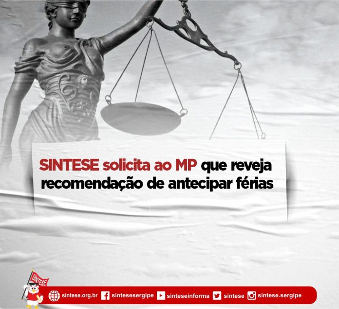 SINTESE solicita ao MP que reveja recomendação de antecipar férias